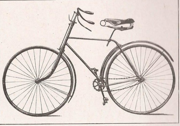 Il fallait donc revoir ce levier sur le moellon afin qu’on puisse propulser la machine toute en assurant autant la sécurité que la vitesse. Suite à quelques erreurs on a opté pour la conversion de la roue arrière en propulseur, activé par une chaîne qui reliait deux pignons. Les pédales furent fixées à celui d’avant, évidemment plus grand afin de multiplier les tours de la roue motrice. La bicyclette devenait ainsi un moyen de transport sérieux (du fait, le plus rapide sur les routes de l’époque). Le confort manquait, vu l’état de ces routes.