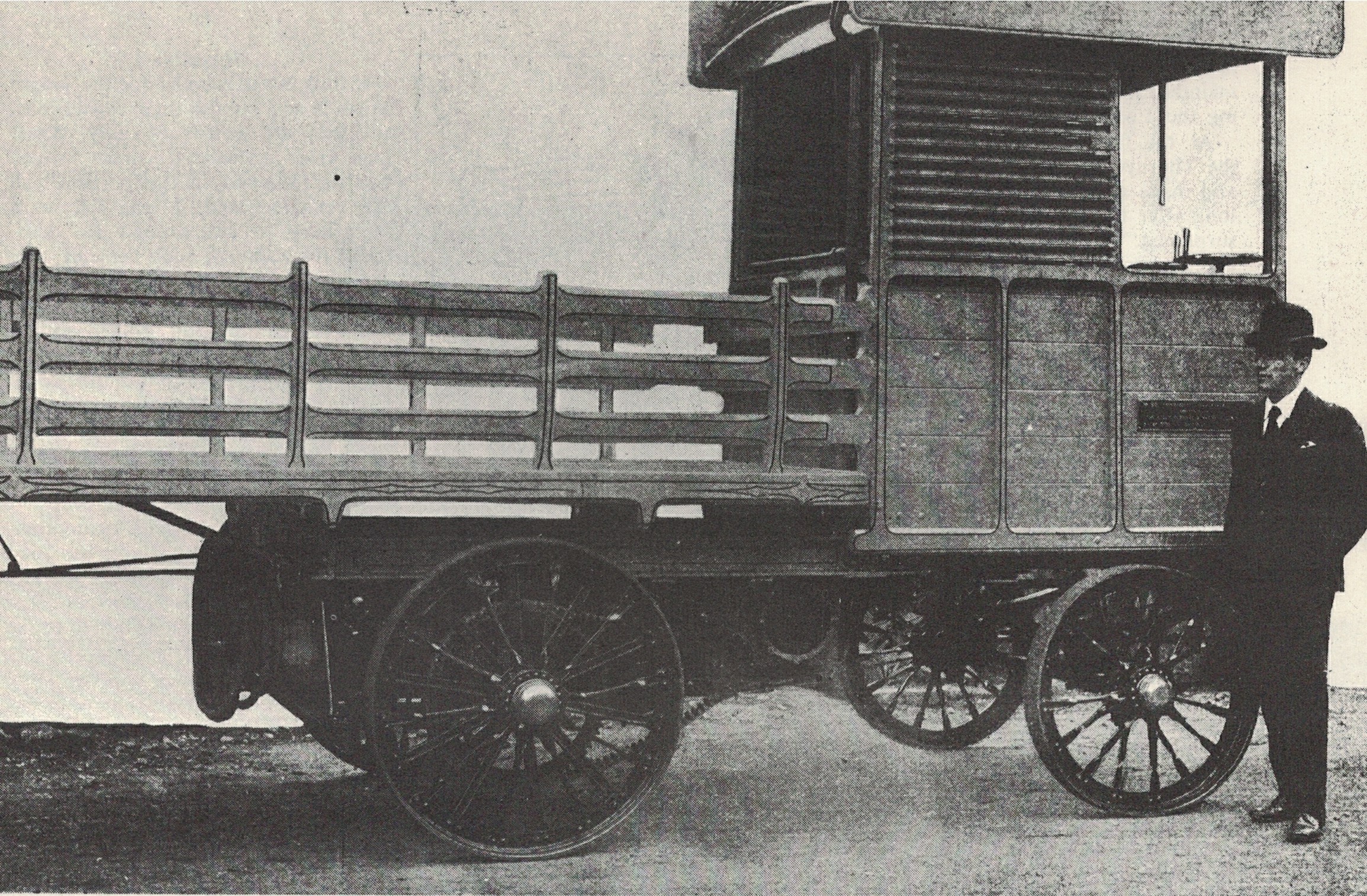 Les choses ont commencé à changer dans les années 1890. Le potentiel des véhicules à moteur, alimentés par la vapeur, le moteur à combustion interne ou l’électricité, pour substituer aux chars tirés par des chevaux pour le transport local de marchandises commencer a être appréciée vers le fin du siècle. Ils étaient plus rapides, portaient des chargements plus lourds, et le tout sans se fatiguer. Ils étaient lents par rapport aux véhicules modernes, roulant à une vitesse légèrement supérieure à celle d’une marche rapide . Heureusement parce que leurs freins primitifs frottant sur les roues étaient notoirement faibles. De plus ils étaient bruyant à cause de leurs pneus en caoutchouc solides et leurs transmission aux chaînes lourds.